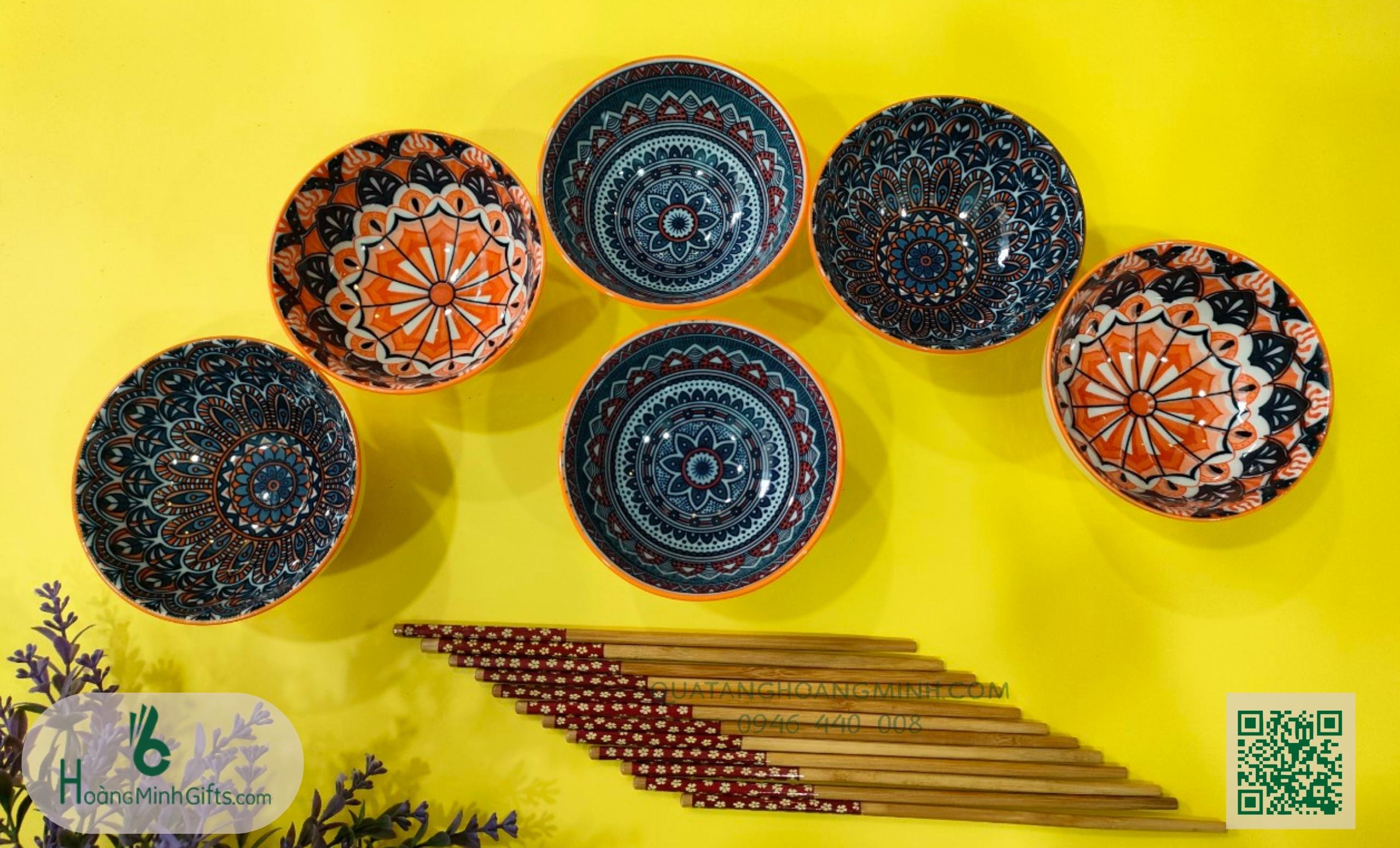 + 6 bát ăn cơm với hoa văn đặc sắc trang nhã.