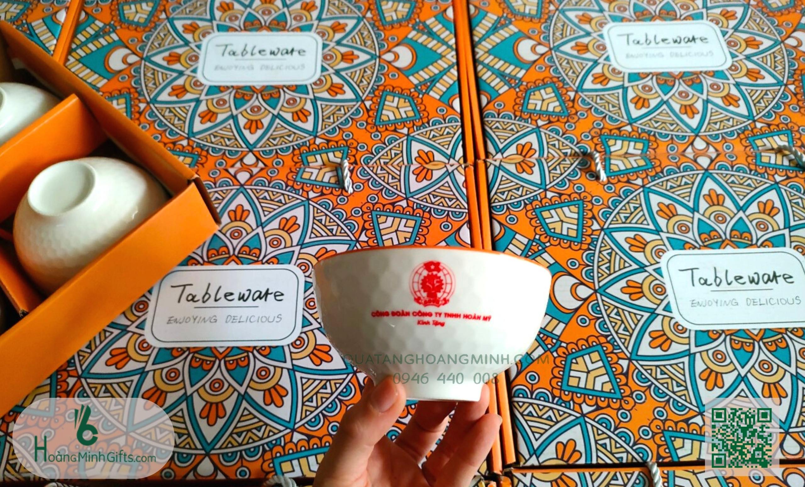 BỘ BÁT SỨ IN LOGO QUẢNG CÁO - KHÁCH HÀNG CÔNG TY TNHH HOÀN MỸ