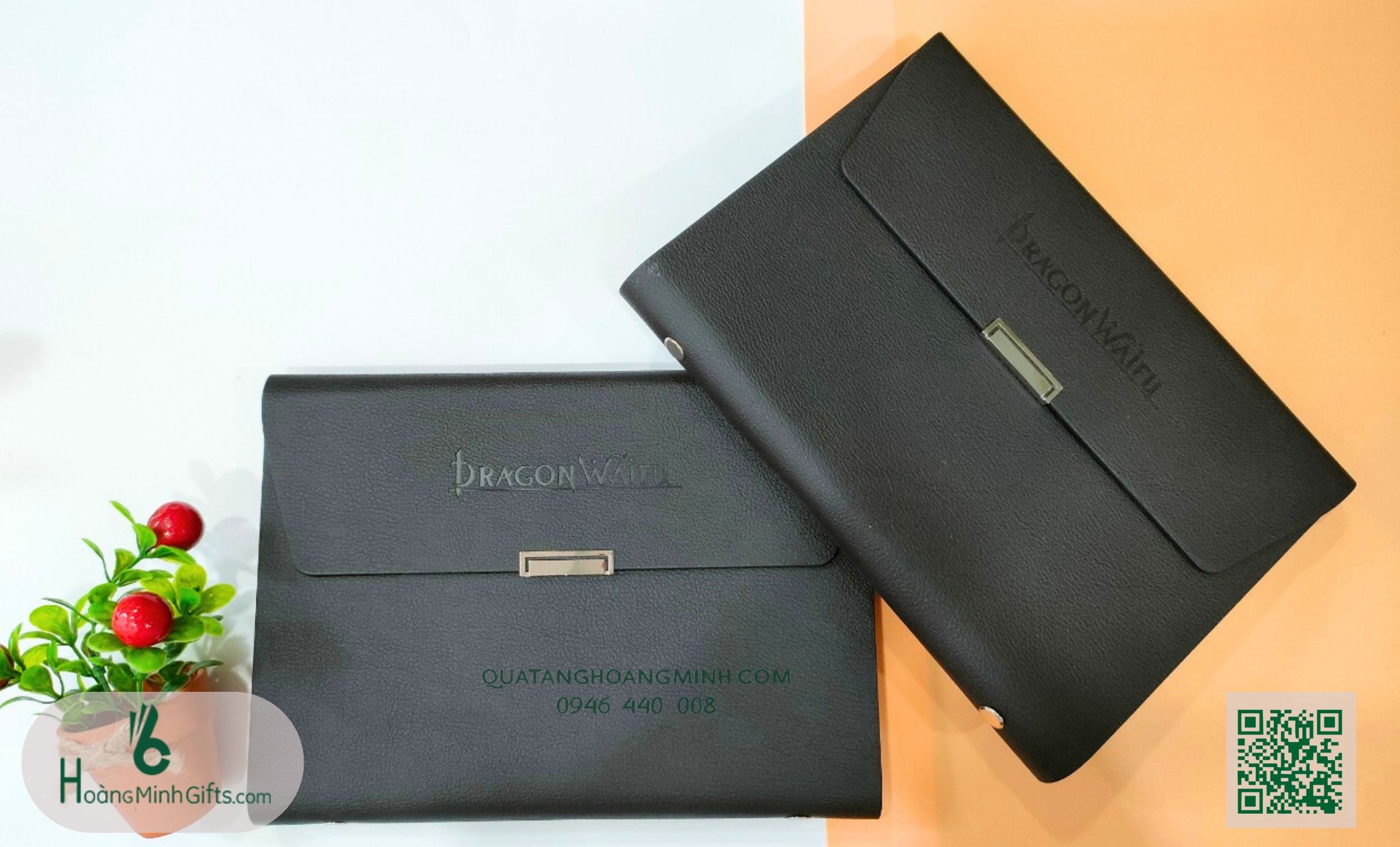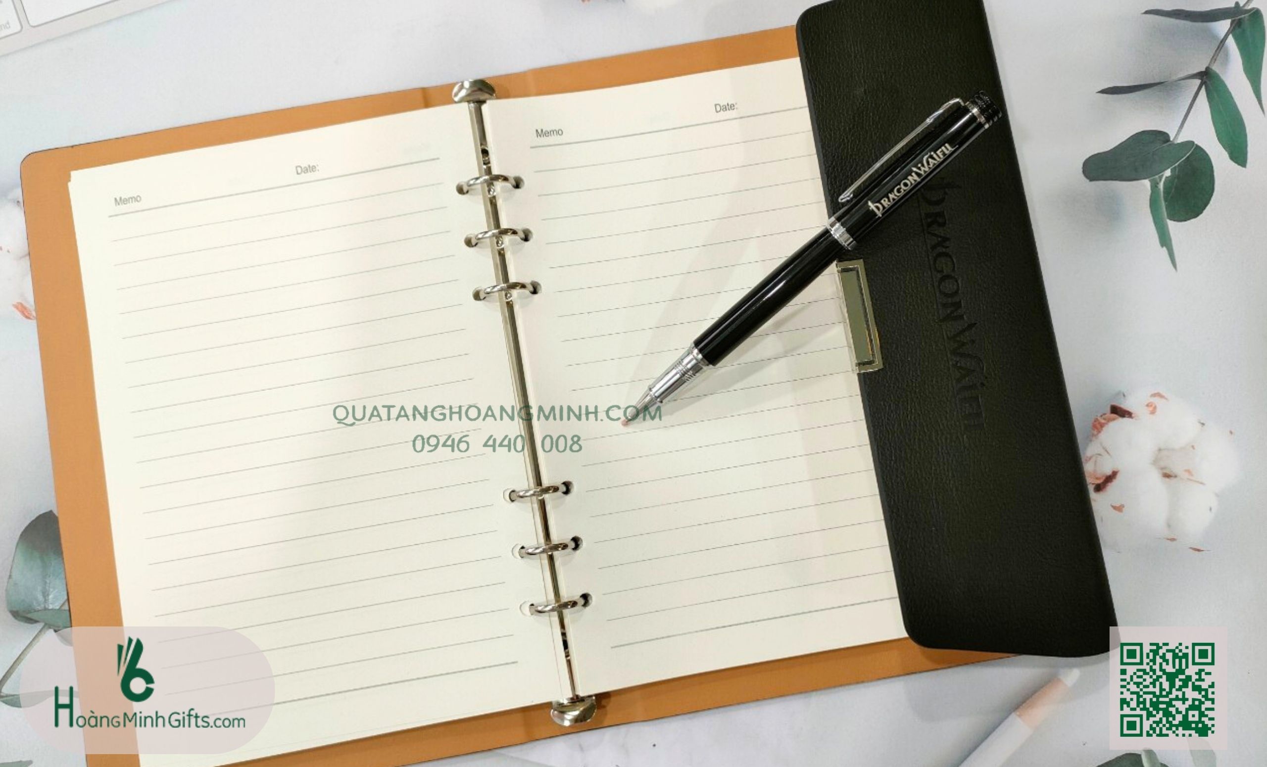 + Sổ da gáy còng A5 dập chìm, dập nhũ hoặc in màu logo trên bìa sổ theo yêu cầu.