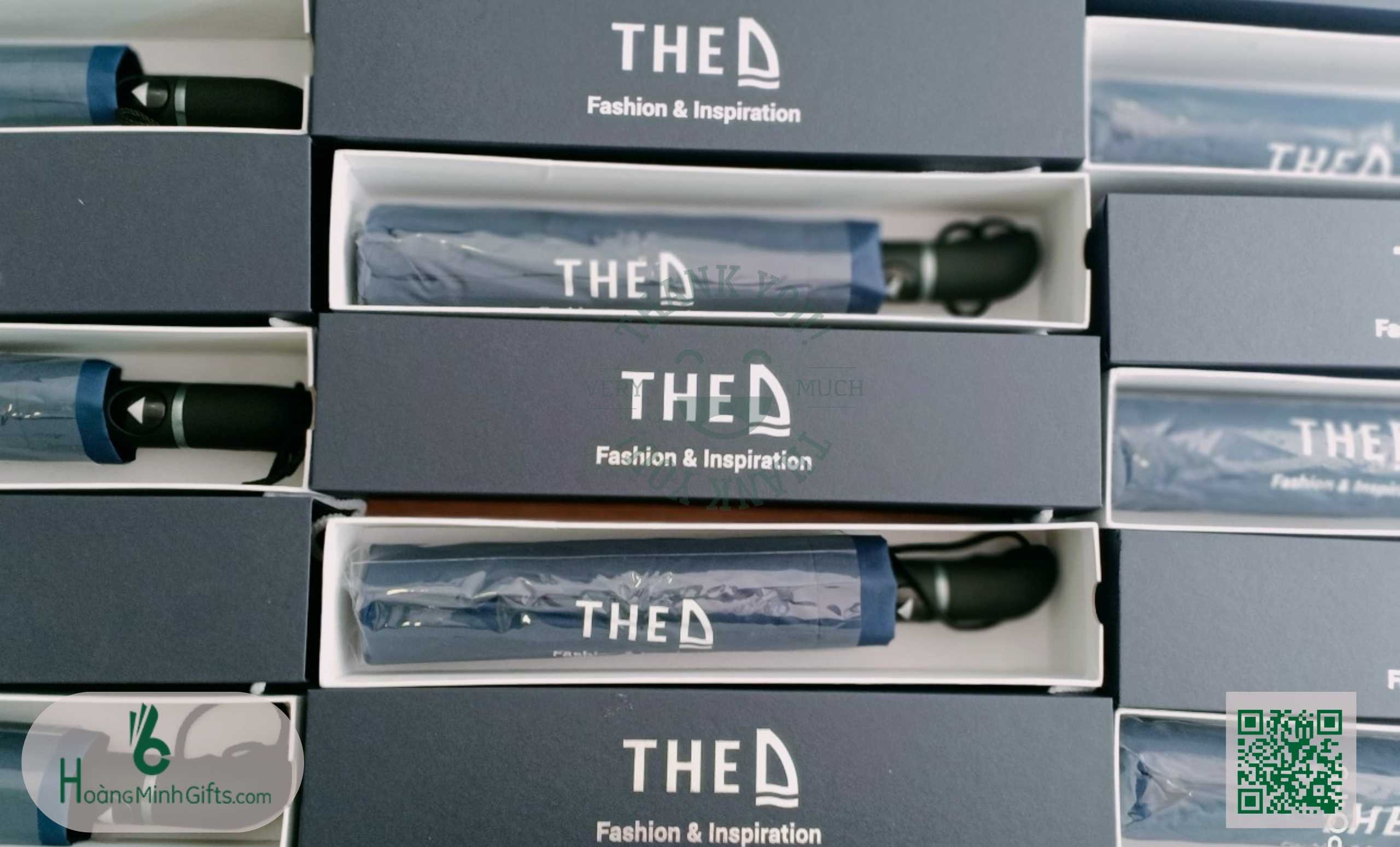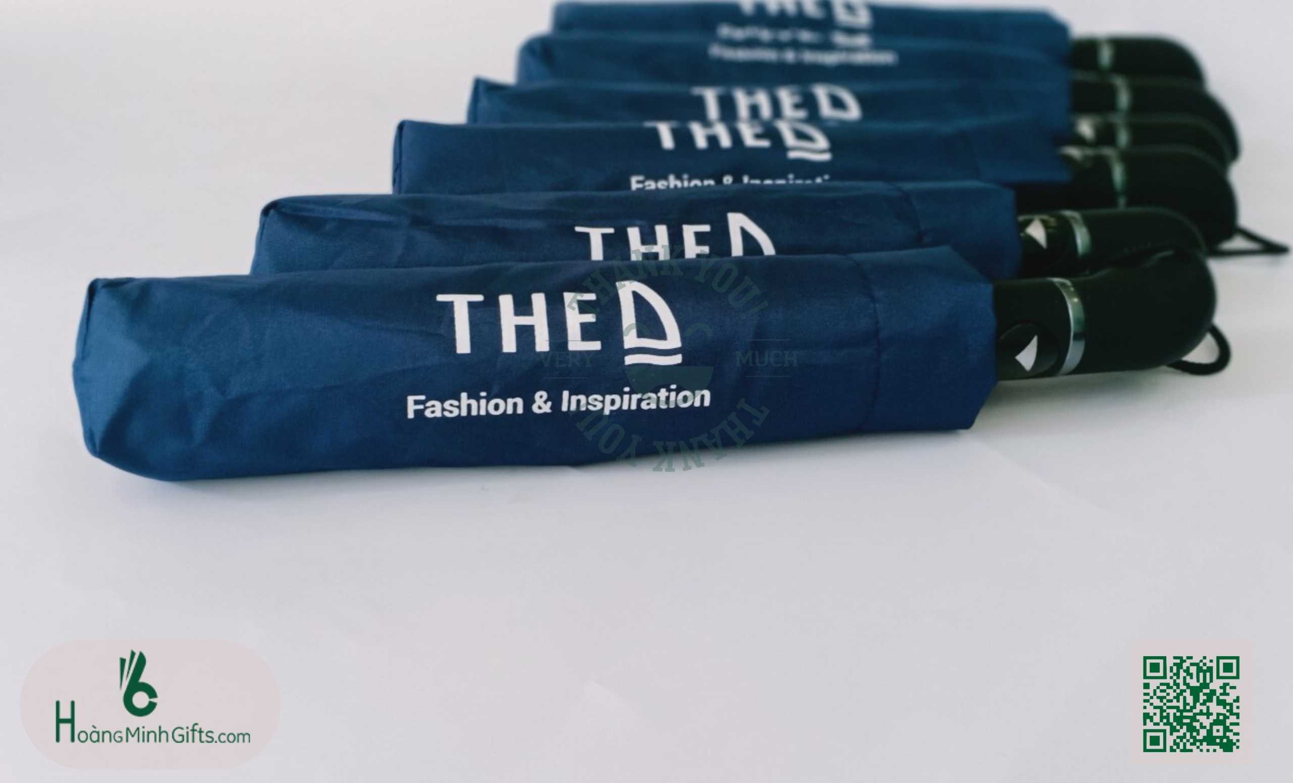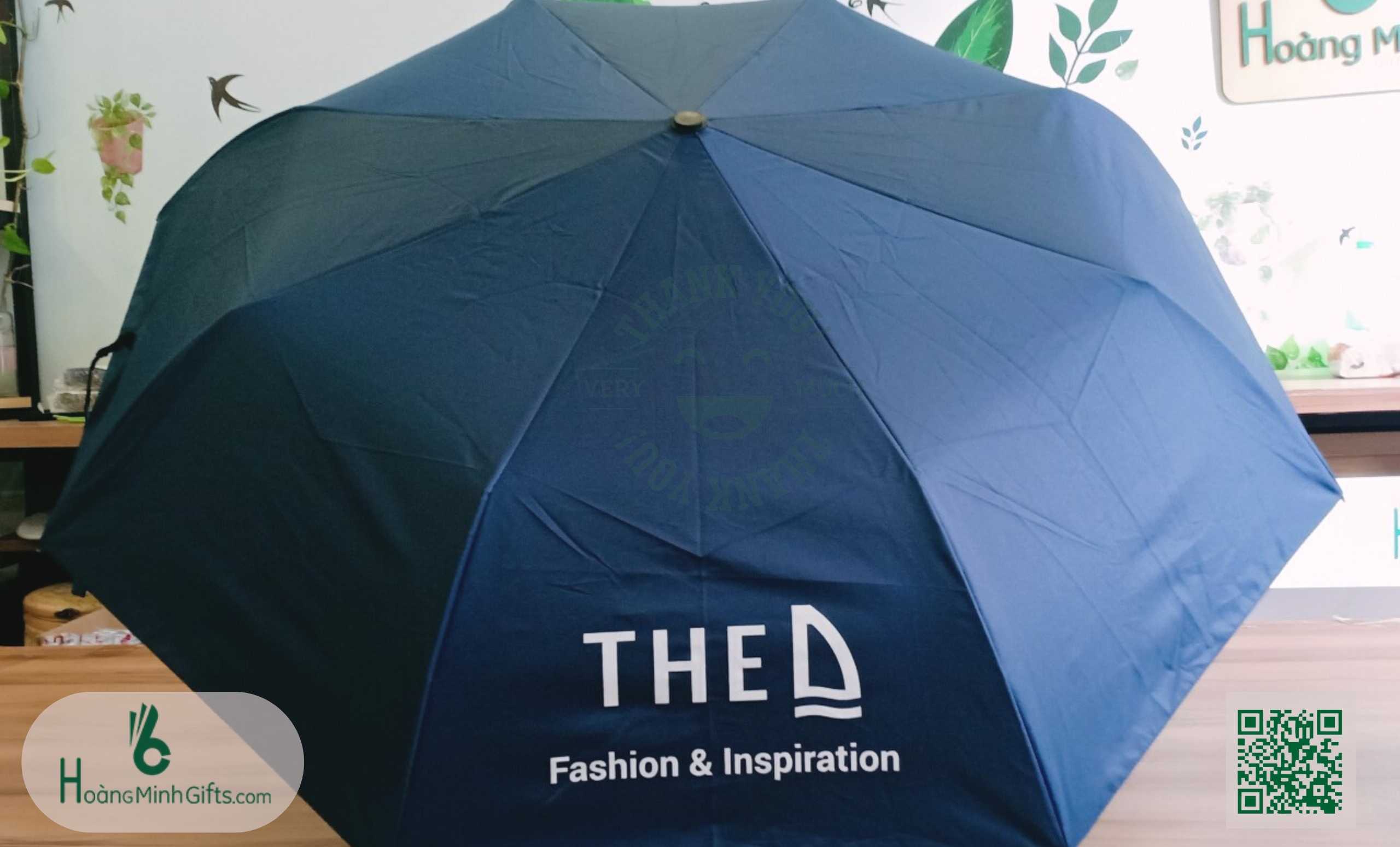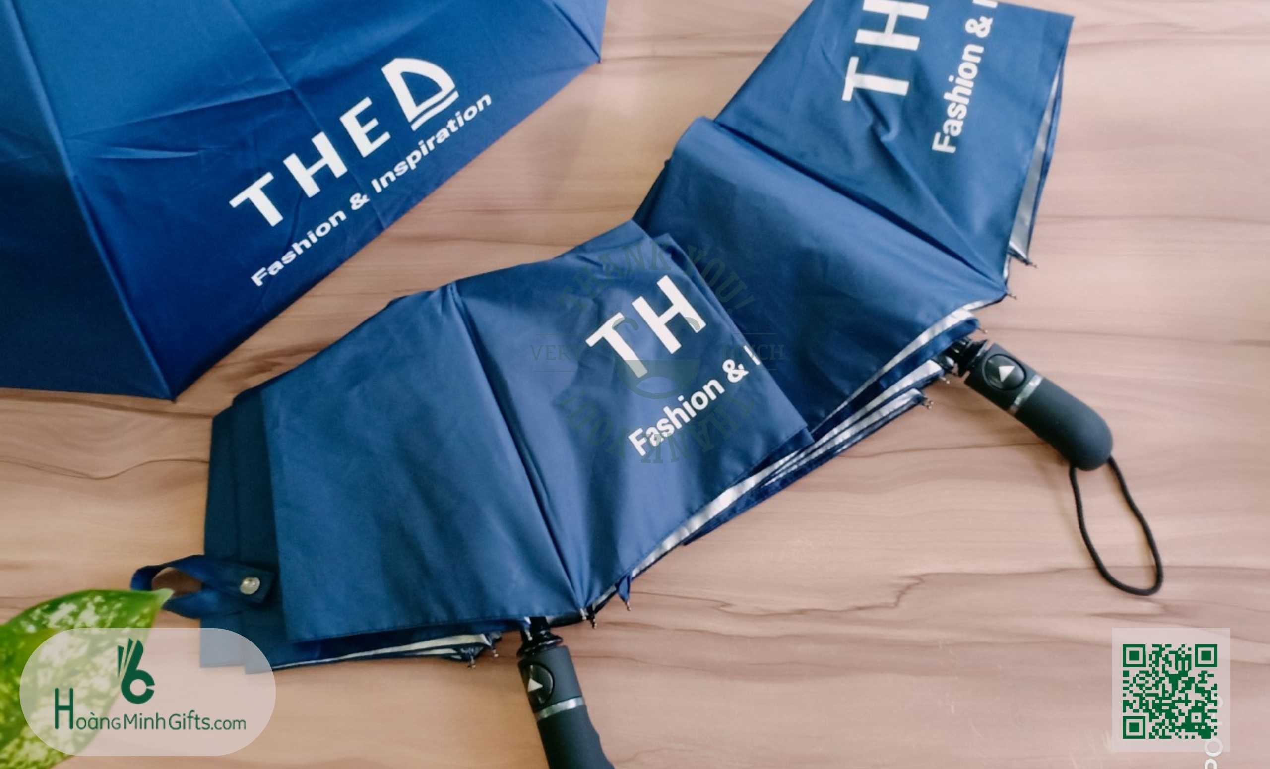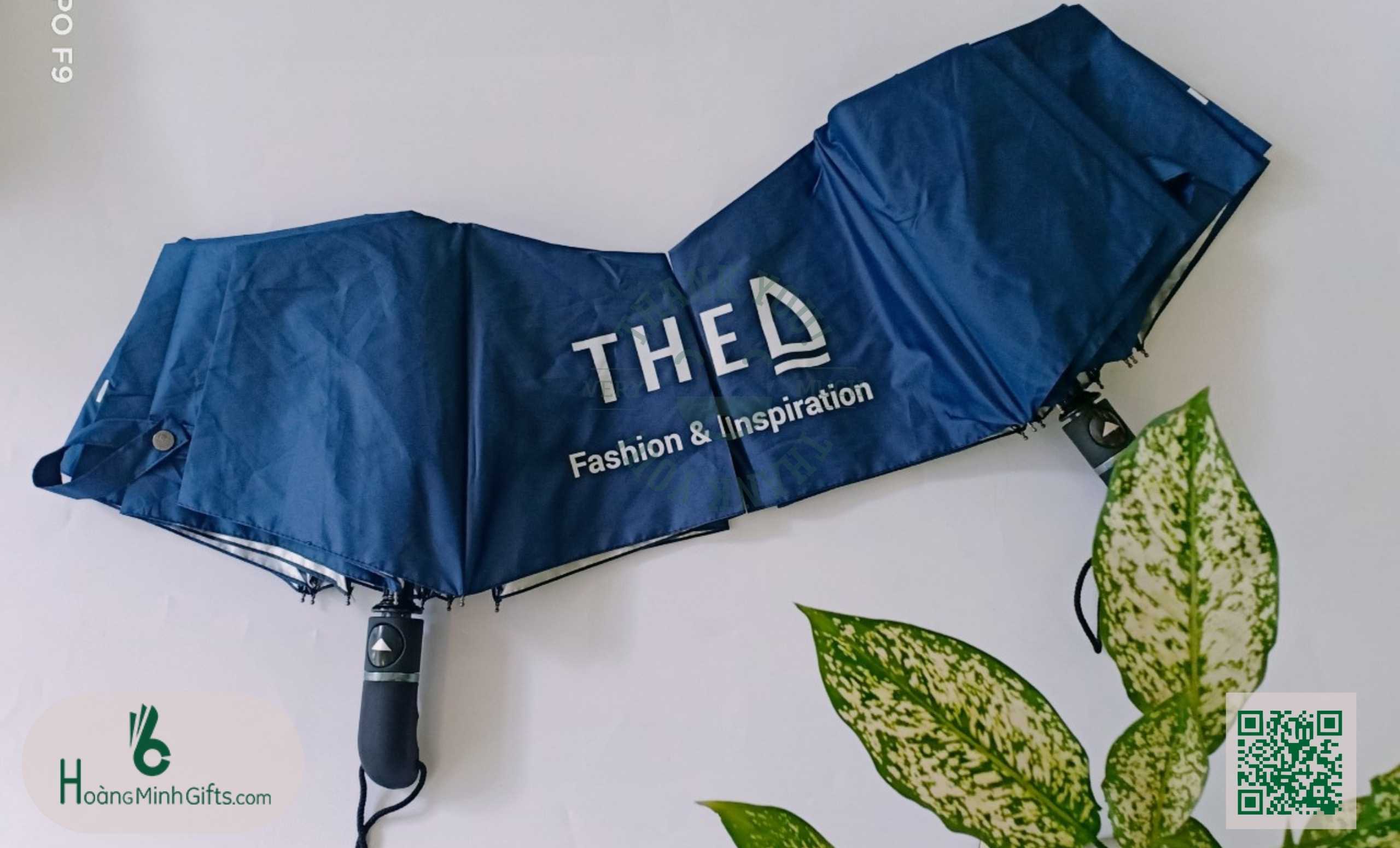 - Ô gấp 3 tự động 1 chiều, 8 cánh, thân và xương bằng kim loại, sơn tĩnh điện đen, chống rỉ, tay cầm nhựa có dây. Phụ kiện: vỏ ô in ấn theo yêu cầu,