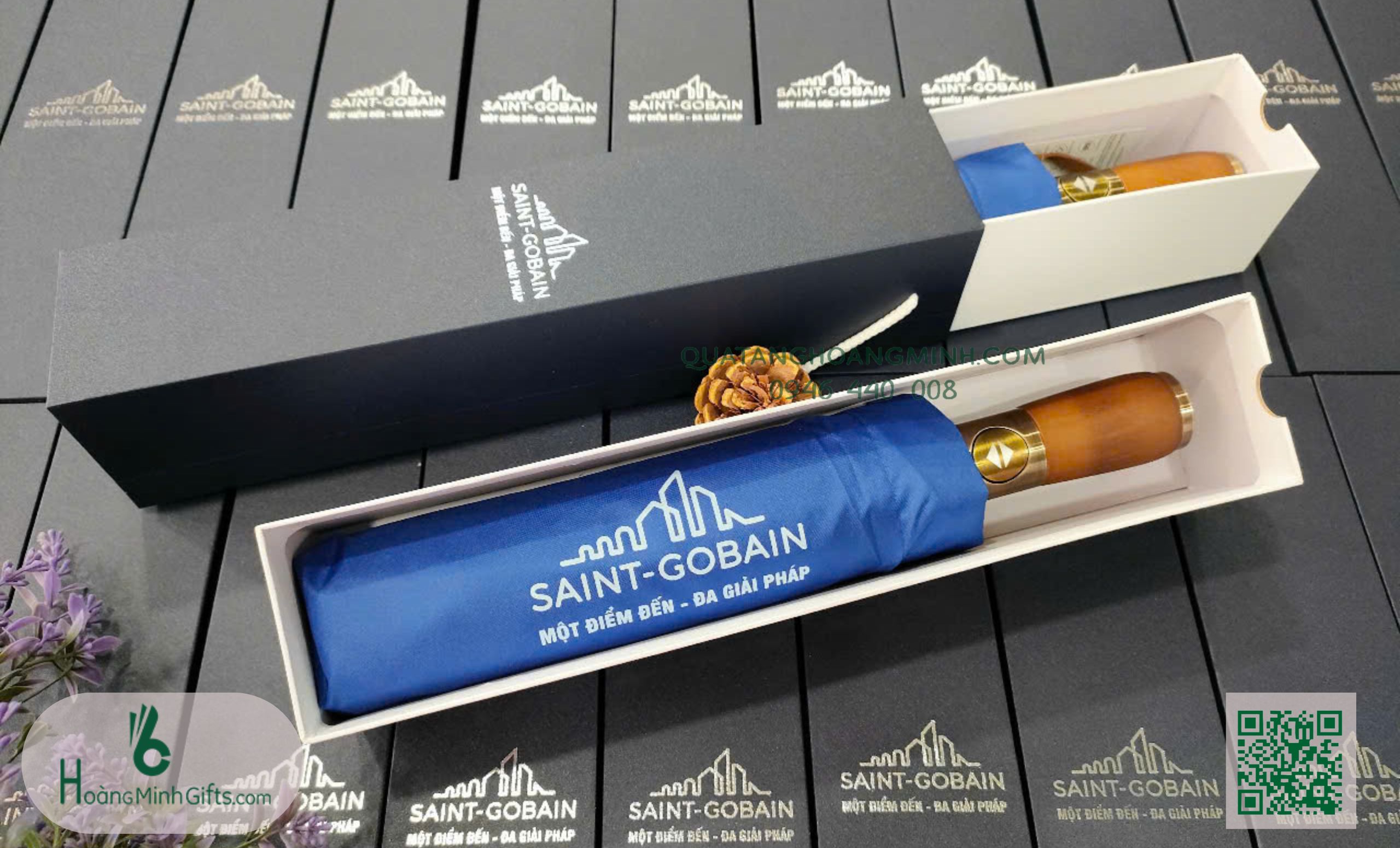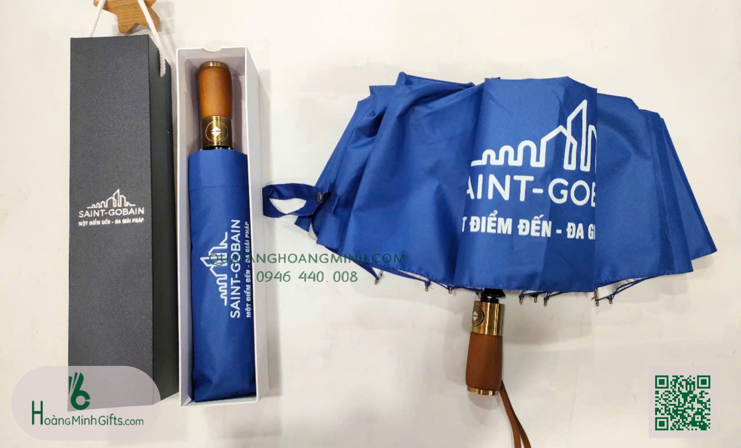 - Ô gấp 3 tự động 2 chiều, 10 cánh, thân và xương bằng kim loại, sơn tĩnh điện đen, chống rỉ, tay cầm gỗ mạ kim loại, In logo lên cánh ô theo yêu cầu . Phụ kiện: vỏ ô in ấn theo yêu cầu.