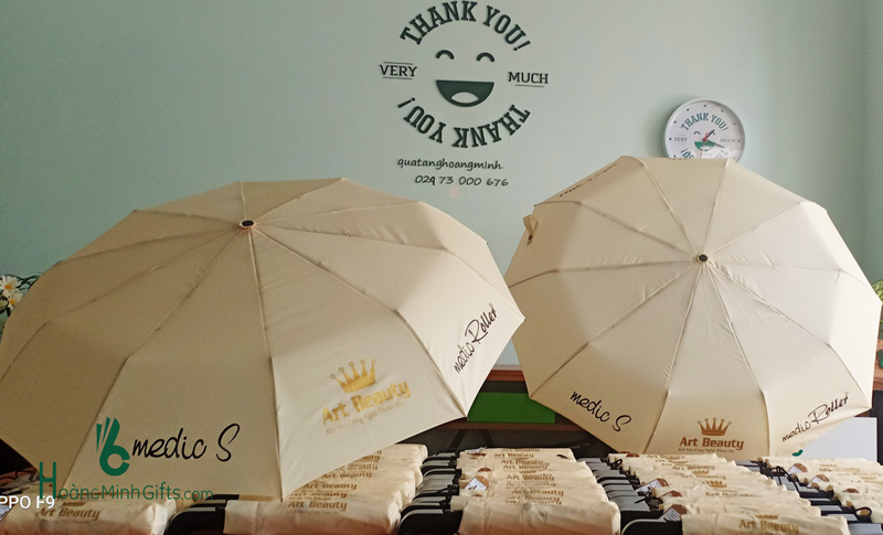 - Ô gấp 3 tự động 2 chiều, 8 cánh, thân và xương bằng kim loại, sơn tĩnh điện đen, chống rỉ, tay cầm nhựa có dây. Phụ kiện: vỏ ô in ấn theo yêu cầu,