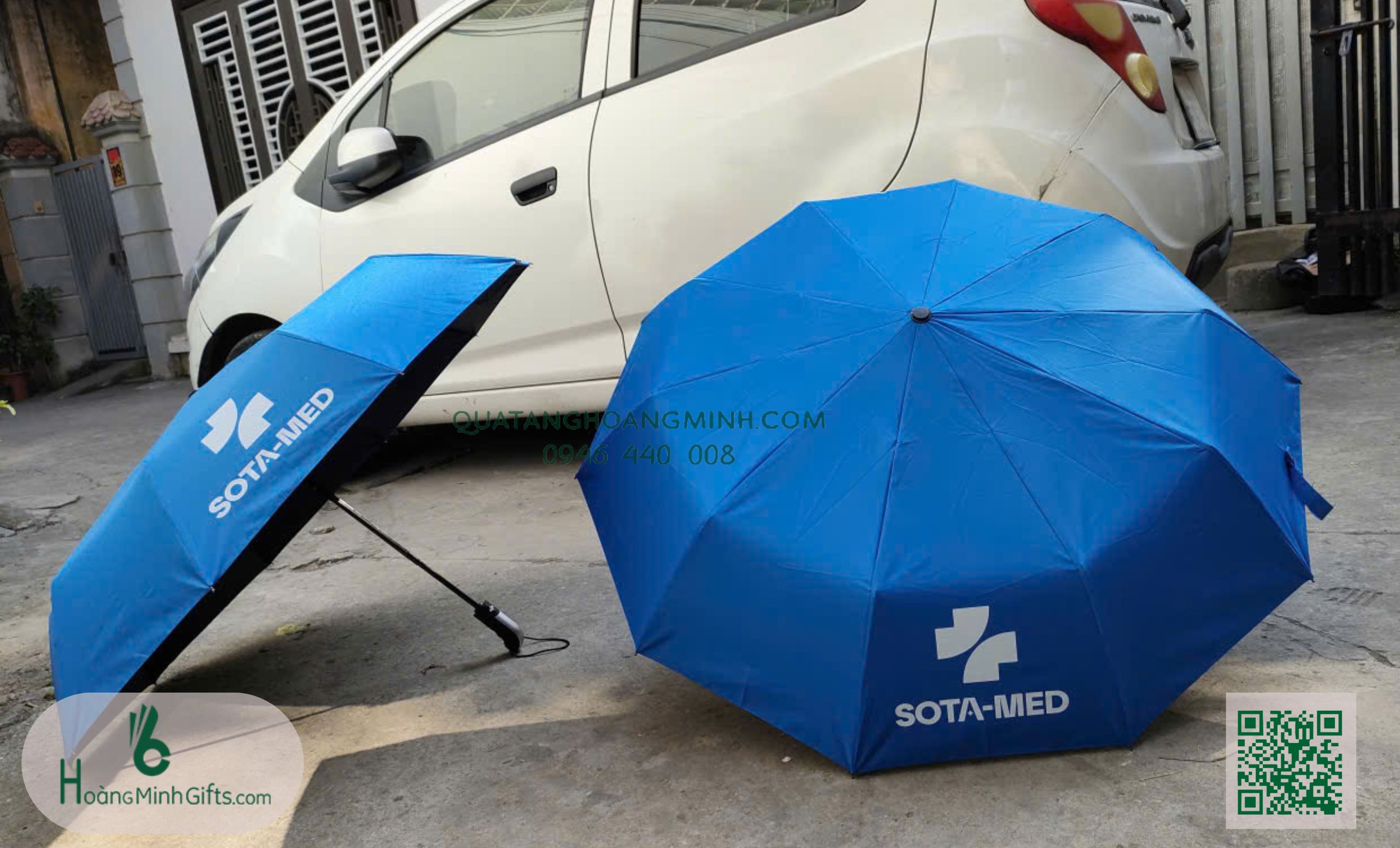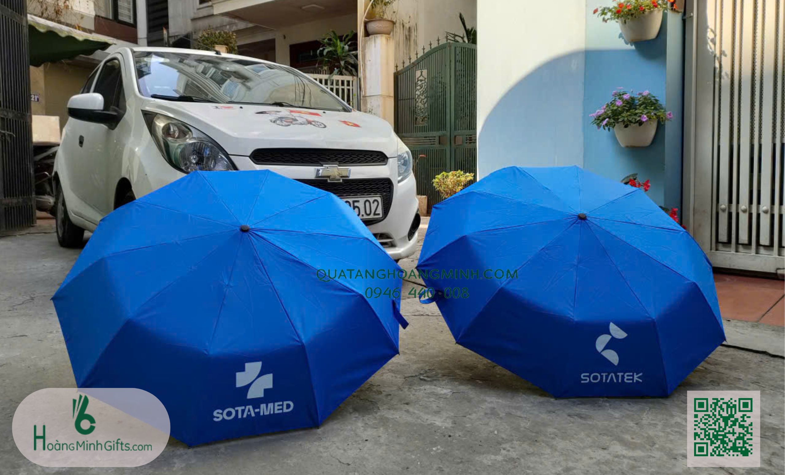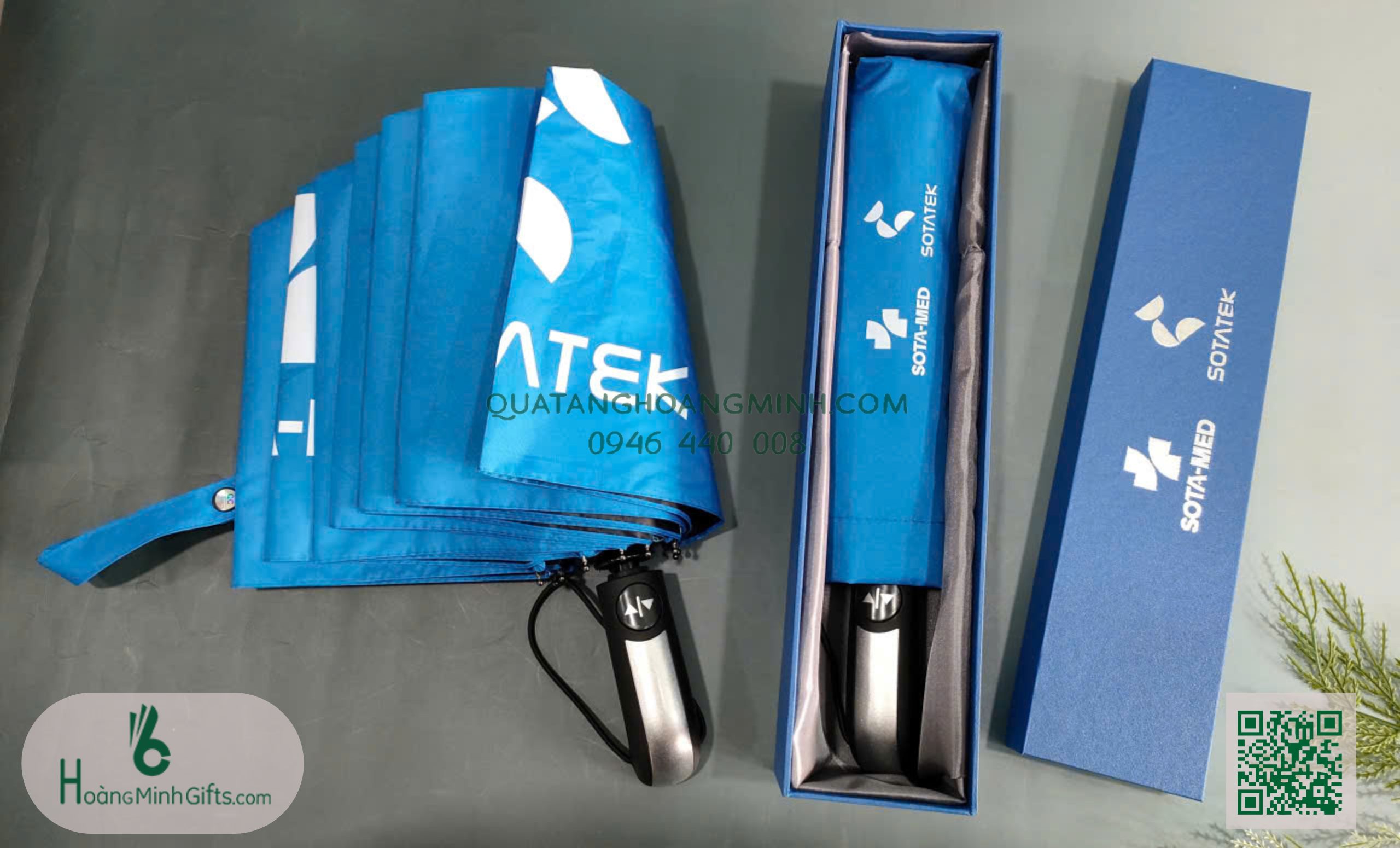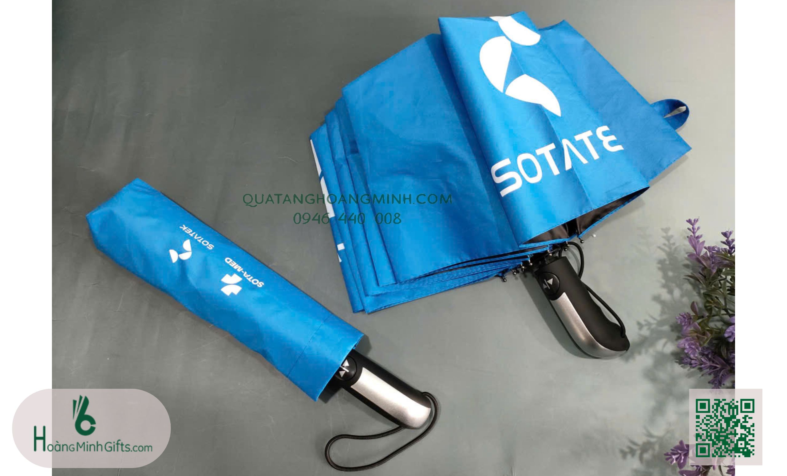 - Ô gấp 3 tự động 2 chiều, 10 cánh, thân và xương bằng kim loại, sơn tĩnh điện đen, chống rỉ, tay cầm nhựa . Phụ kiện: vỏ ô in ấn theo yêu cầu.