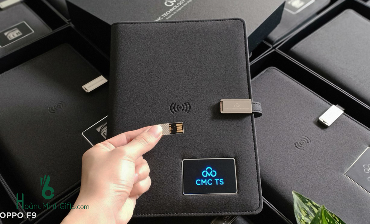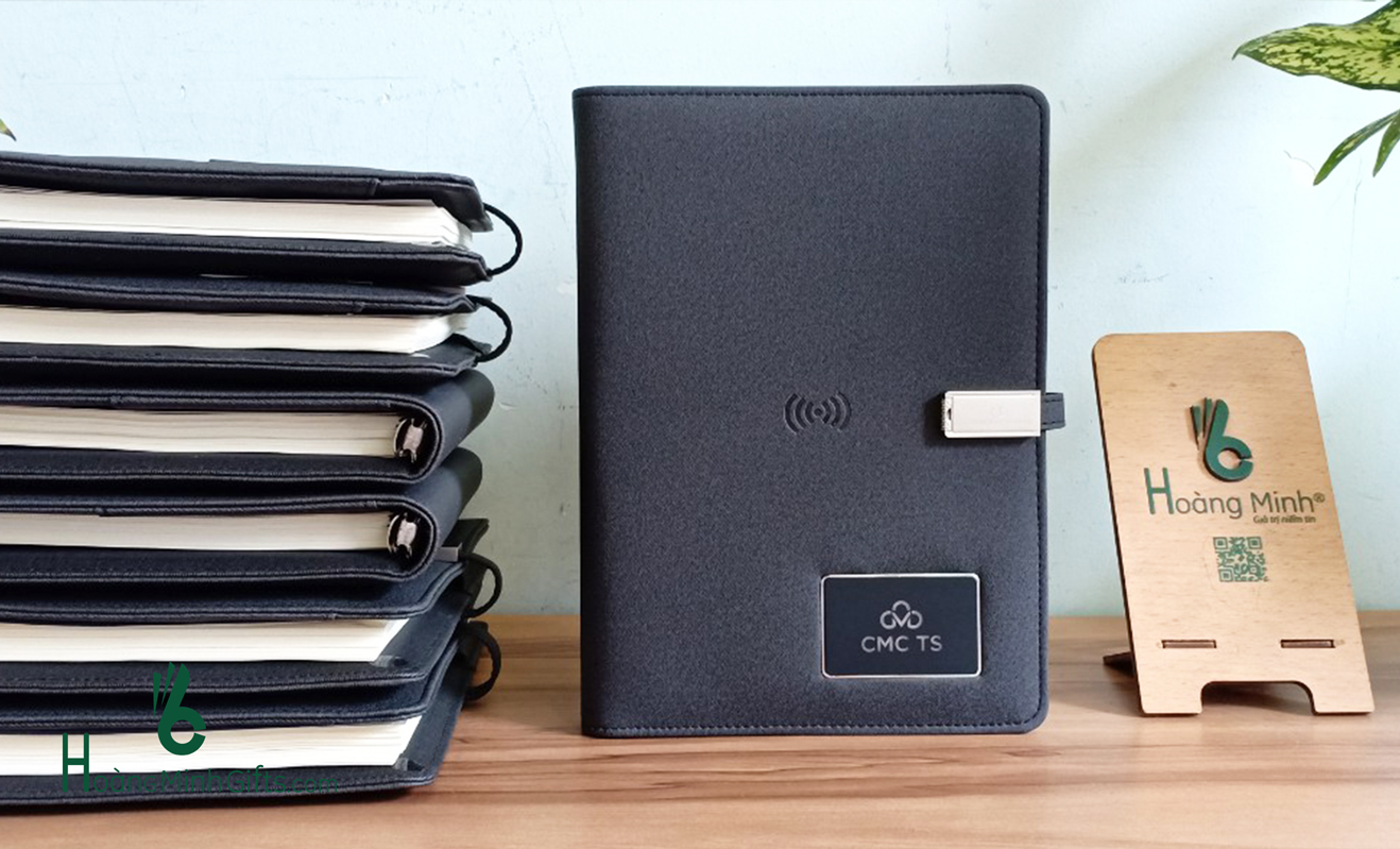 Sổ đa năng 3 in 1 là sự kết hợp thông minh giữa sổ tay A5 gáy còng với sạc dự phòng dung lượng 8.000mAH kèm sạc không dây và USB kinm loại dung lượng 8GB