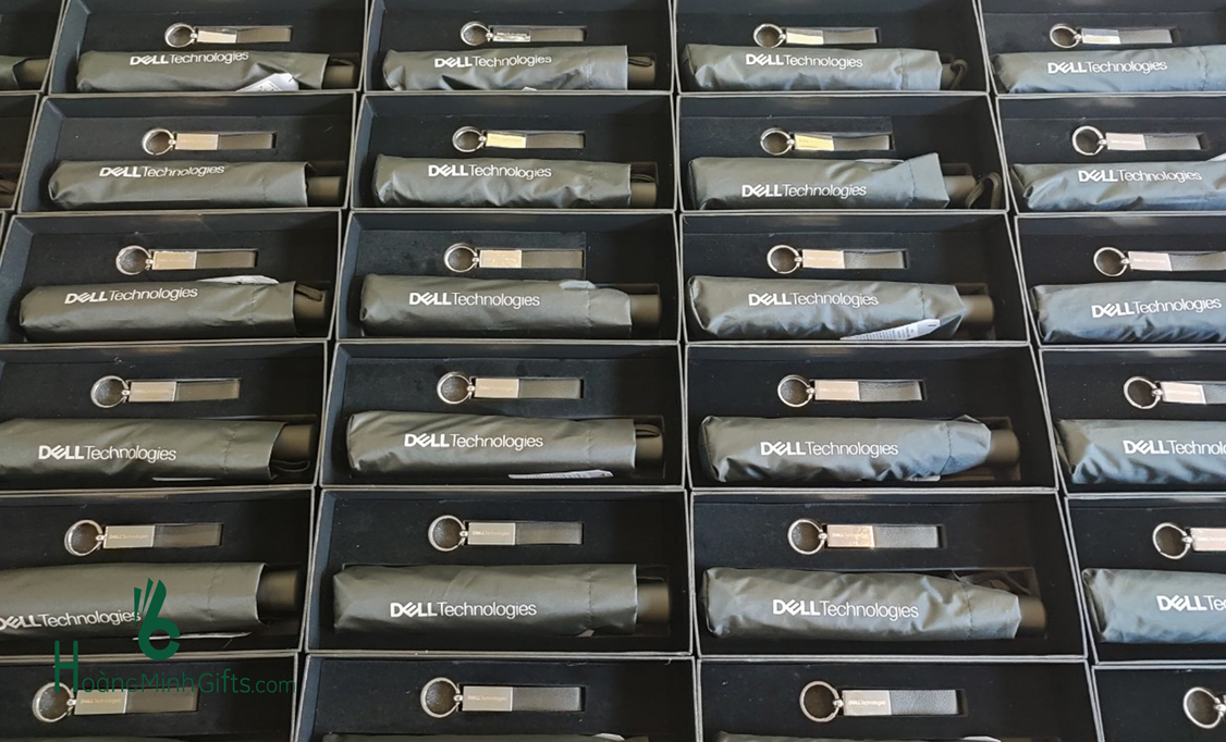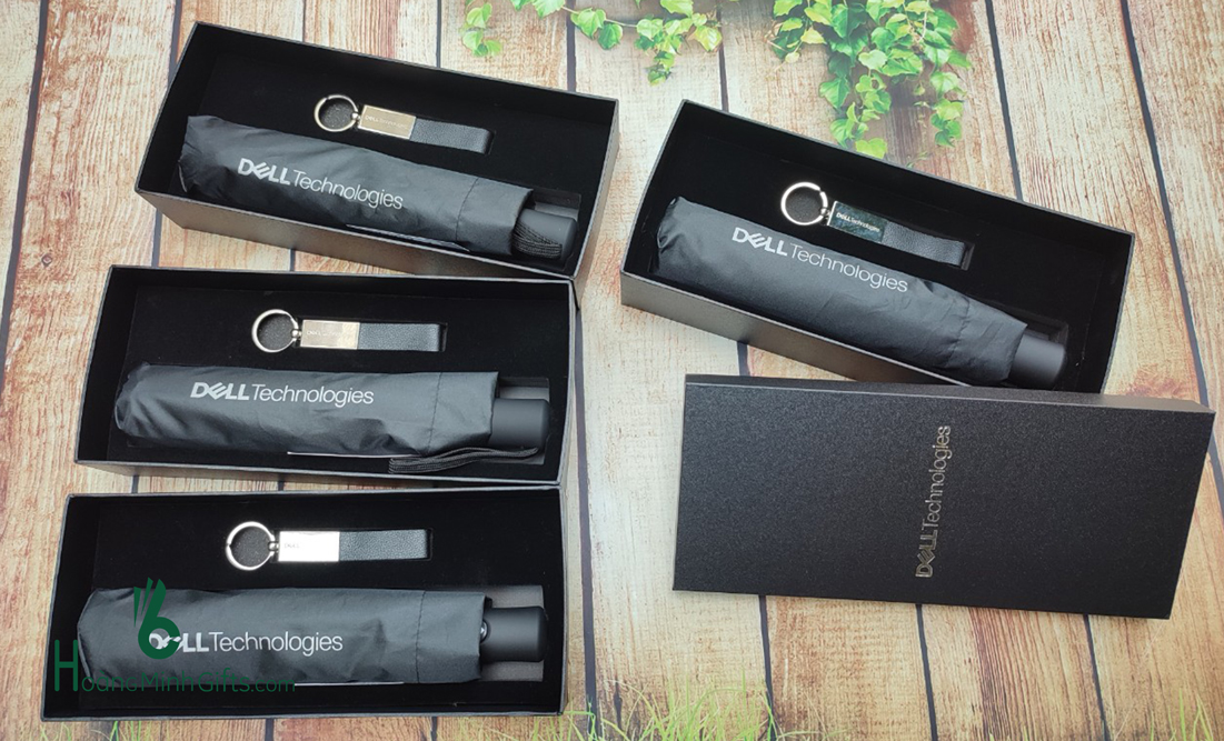 SET QUÀ TẶNG Ô VÀ MÓC KHÓA DA - KHÁCH HÀNG DELL