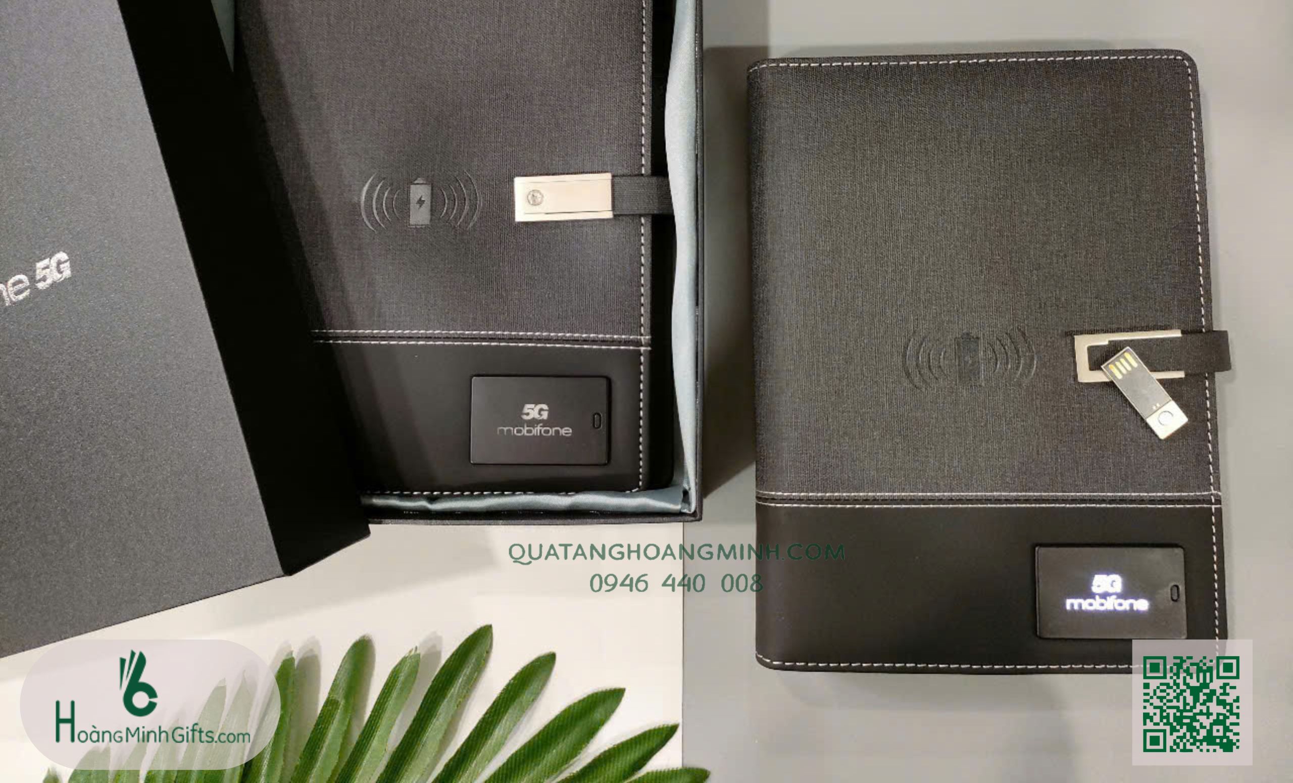 - Sổ đa năng 3 in 1 là sự kết hợp thông minh giữa sổ tay A5 gáy còng với sạc dự phòng dung lượng 8.000mAH hoặc 10.000mAH kèm sạc không dây và USB kinm loại dung lượng 8GB.